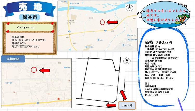 本庄駅から22分の住宅用地 寄居町桜沢の売地 寄居町据野の土地 深谷市境の土地 熊谷市玉井の貸家 熊谷市見晴町の宅地 深谷市小前田の宅地 深谷市武蔵野の売地 深谷市長在家のアパート 深谷市菅沼マンション 深谷市本田売地 熊谷市籠原貸店舗 熊谷市籠原貸アパート 深谷市永田貸アパート 深谷市永田貸マンション 深谷市ふかや花園貸アパート 深谷市上野台売地