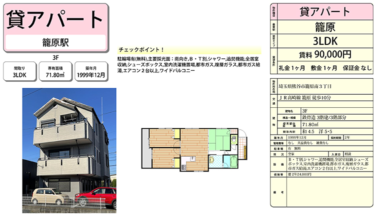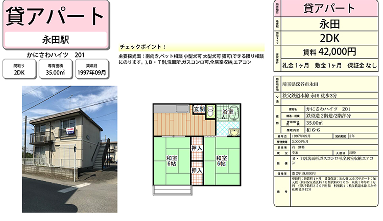 | 所在地 | 埼玉県深谷市永田 かにさわハイツ201 |